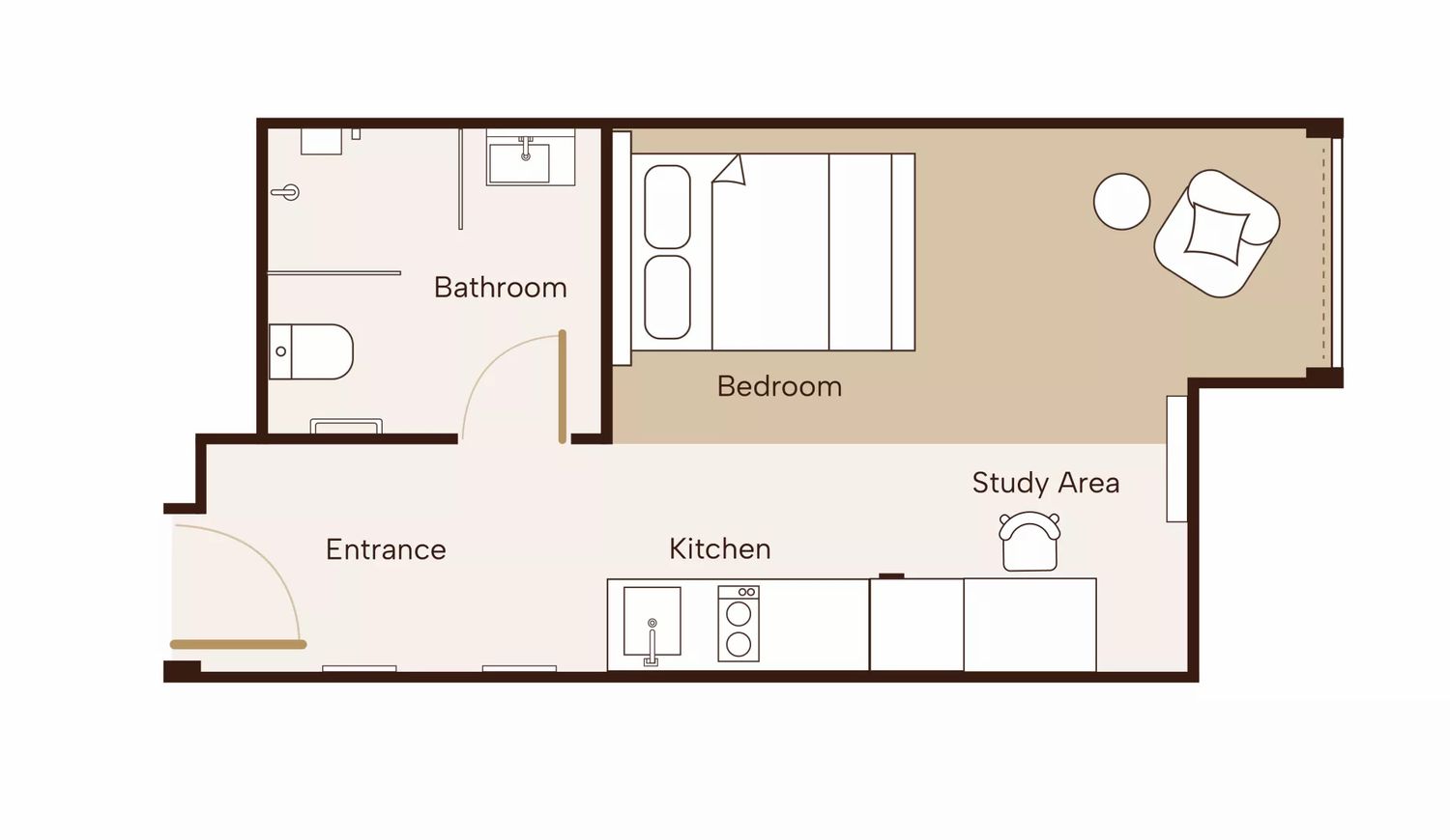 A variation of our classic Signature Studio, the Studio Flex offers a more traditional square layout with a large window, tastefully furnished to meet your personal needs while leaving you the flexibility to style it. Ideal for residents who prefer openness and are ready to add personalised touches to make the space their own.